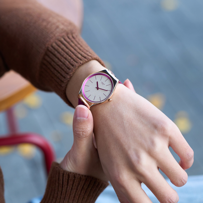 Swatch斯沃琪瑞士新款手表简约绚薄时尚静音男女彩盘腕表圣诞礼物