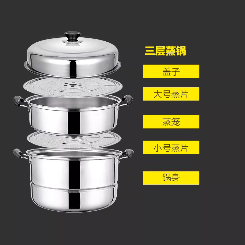 加厚不锈钢双层蒸锅家用二三层锅大号汤锅蒸馍蒸鱼锅电磁炉煤气灶