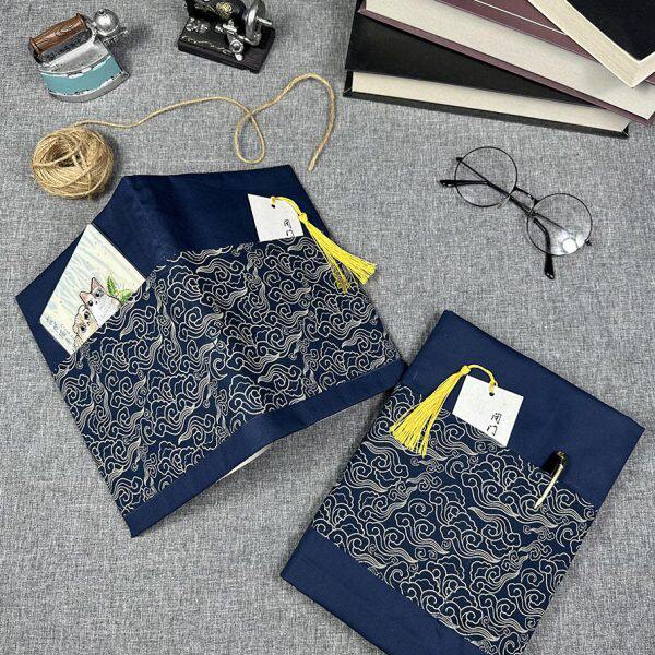 宽保护套布书通用清洗长书皮书 厚可衣口袋尺寸衣可调节布书多本