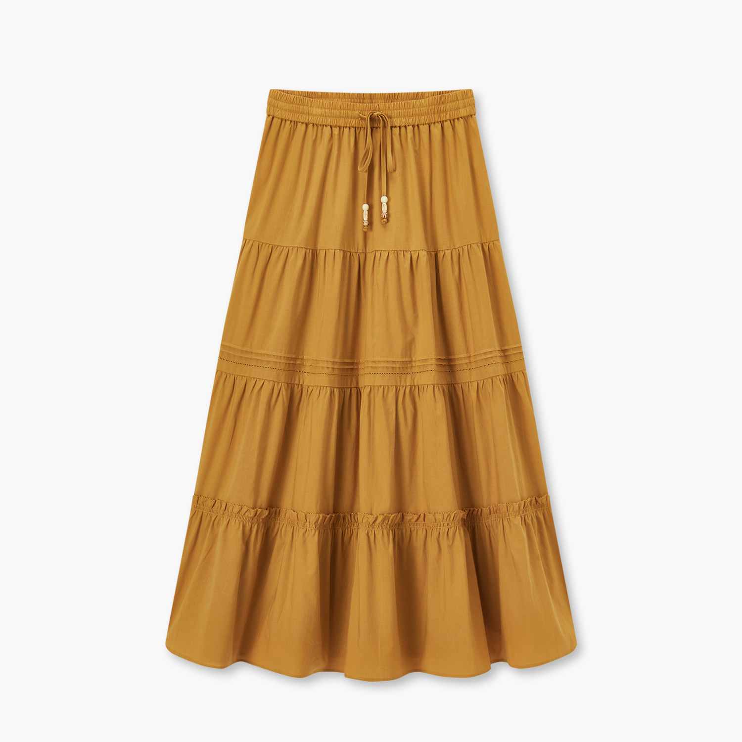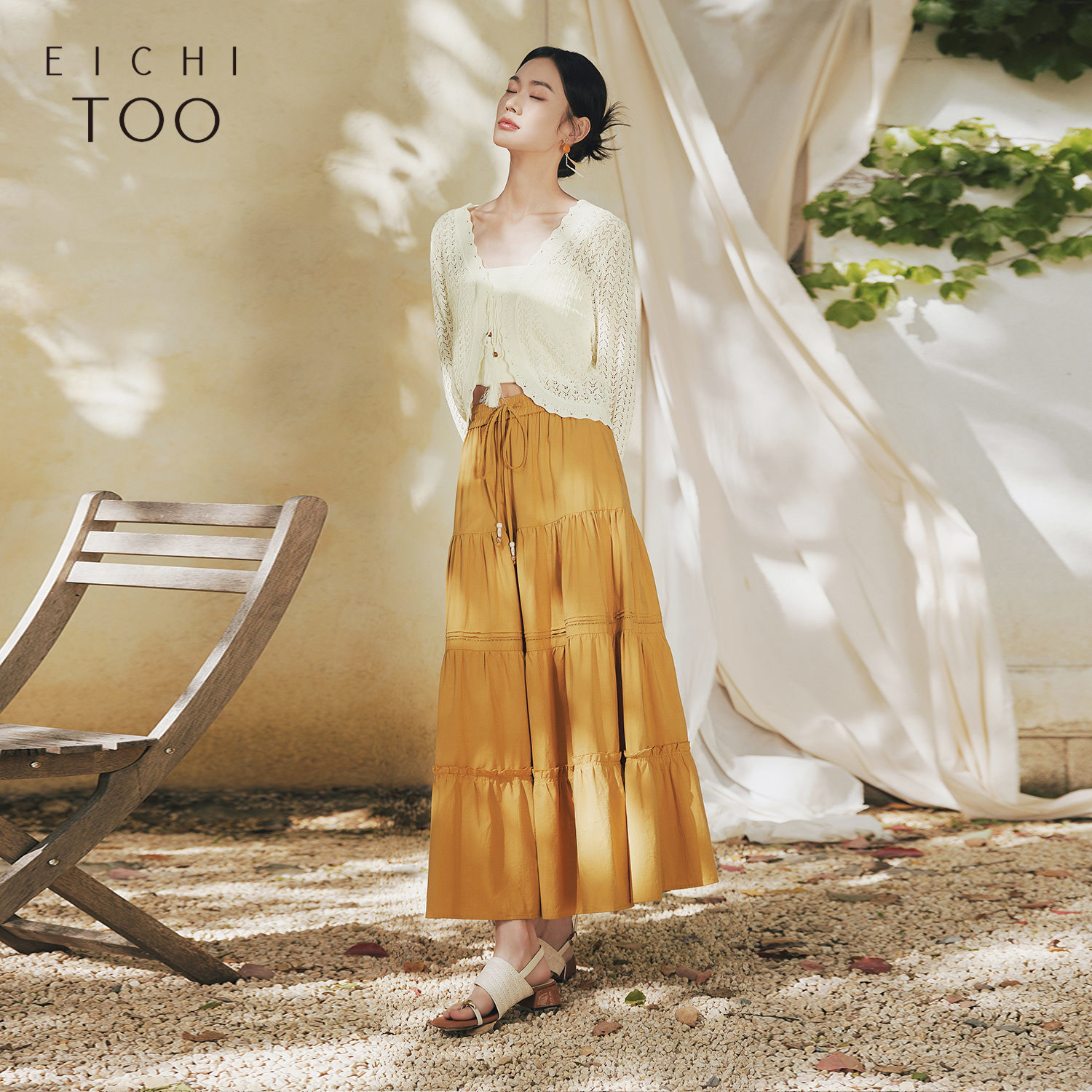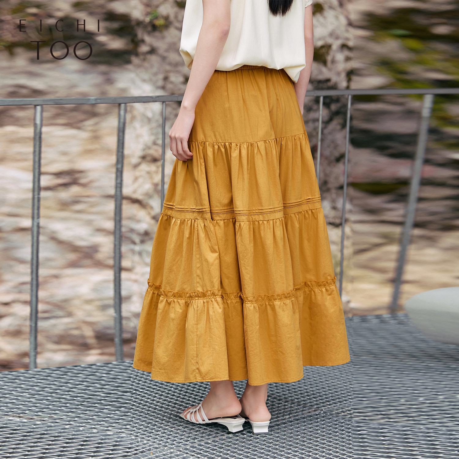 爱居兔莱赛尔A字裙夏季新款半身蛋糕长裙纯色度假风单裙