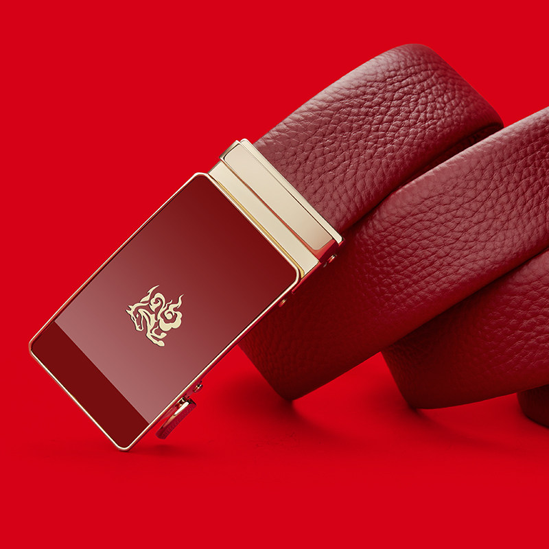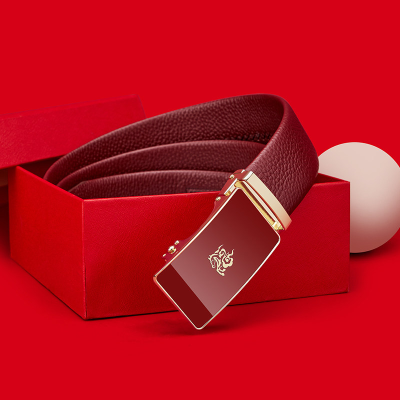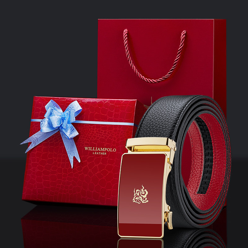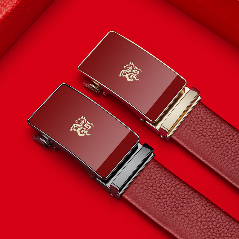 保罗男士皮带真皮2026新款本命年纯牛皮裤带马年自动扣红腰带送礼
