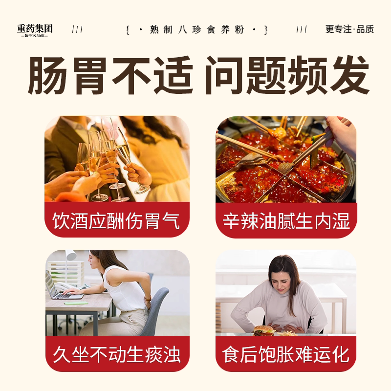 熟制古方八珍粉官方旗舰店山药养胃粉正品伏湿食养调理脾胃湿气重