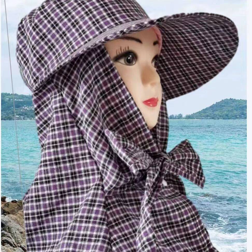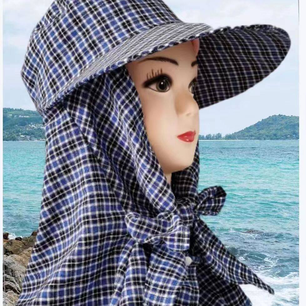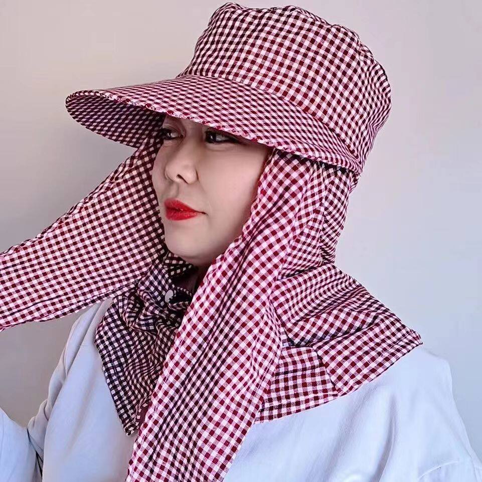 遮阳帽女防晒帽子运动户外采茶帽面罩遮脸太阳帽子防晒帽粉色红色