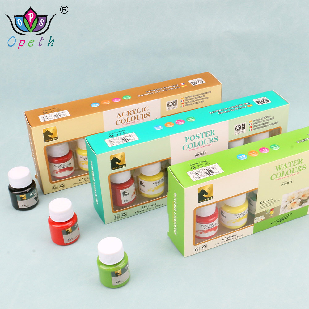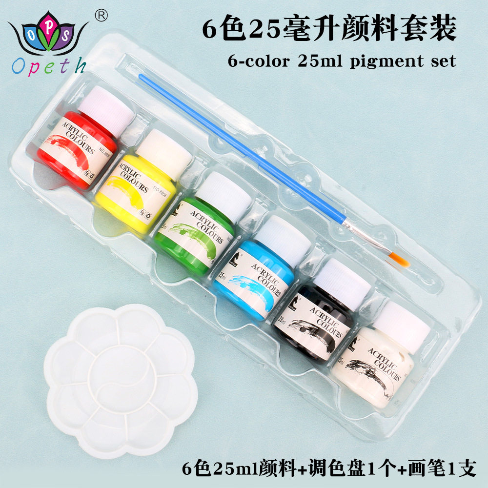 6色颜料套装25ml玻璃丙烯水粉水彩涂鸦颜料纺织广告绘画颜料套装