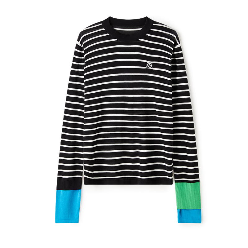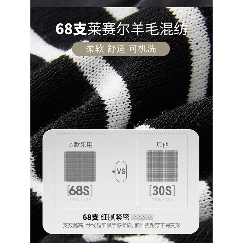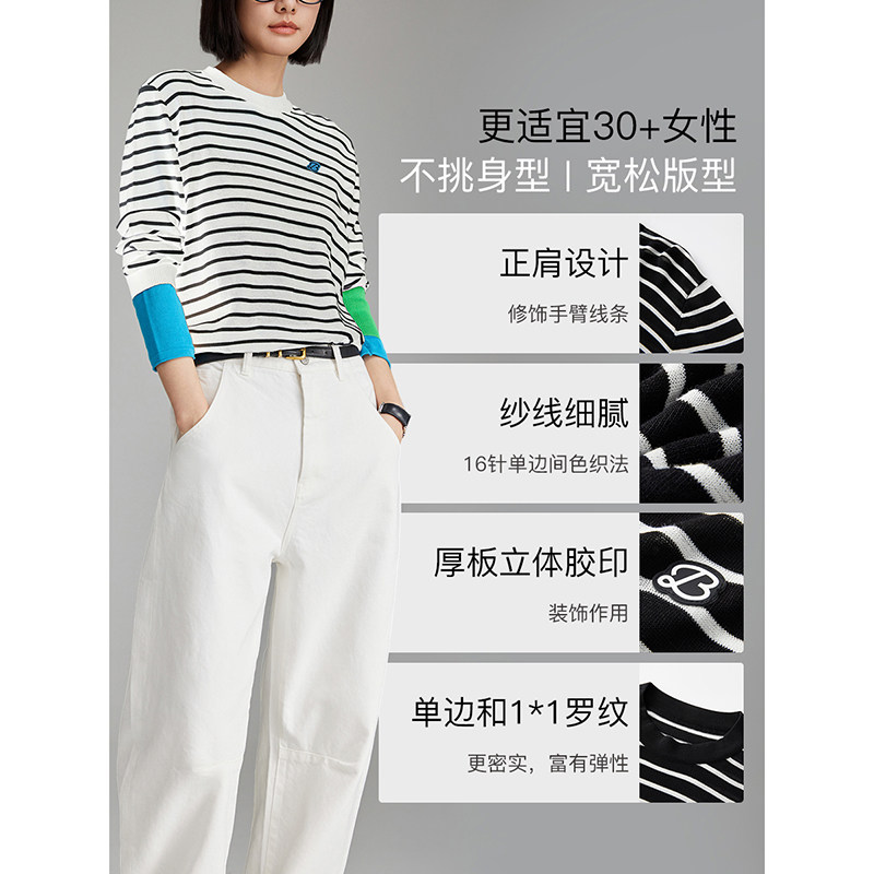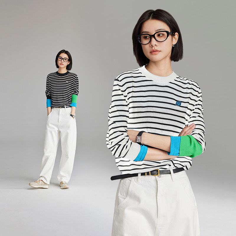 云上生活【奥利针织衫】撞色条纹莱赛尔羊毛针织衫春季套头衫上衣