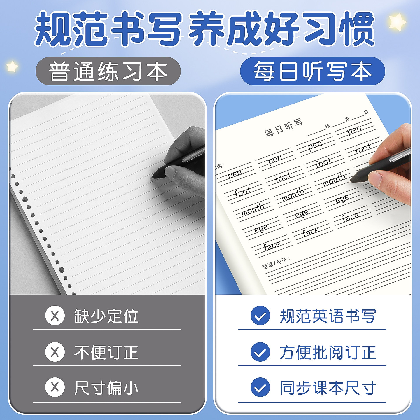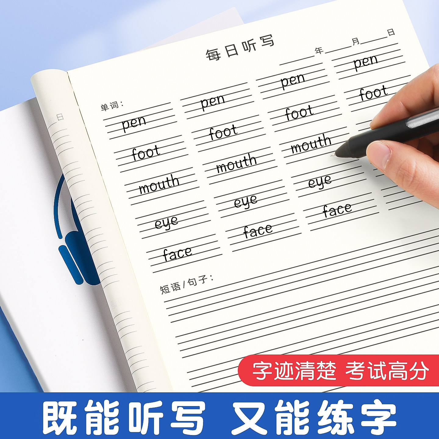 小学英语每日听写默写本小学生专用一年级二年级三四五六下册单词作业本拼音错题本语文练习词语班级团购批发