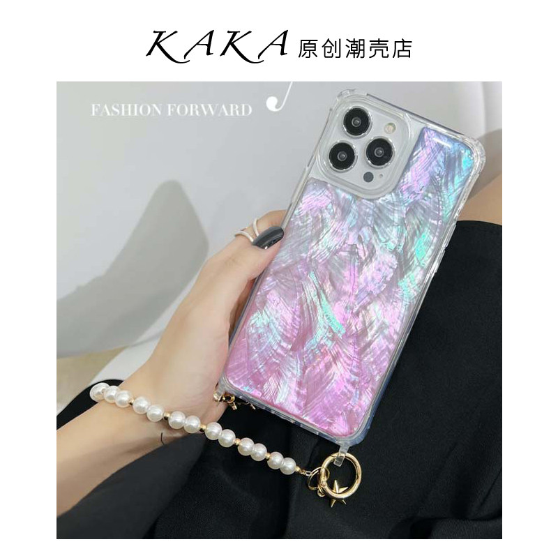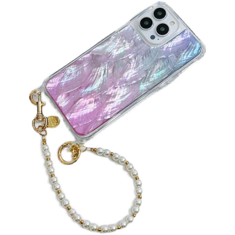 蓝紫渐变天然贝母星星珍珠链条适用苹果14手机壳iPhone13/11防摔