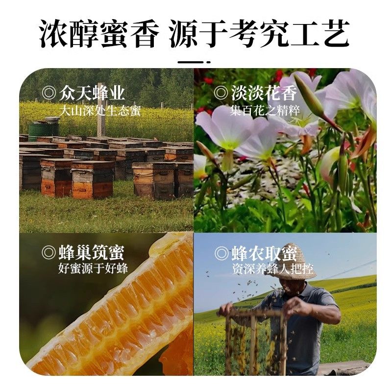 众天蜂蜜青聆洋槐成熟蜂蜜秦岭槐花蜂蜜瓶装官方旗舰店500g