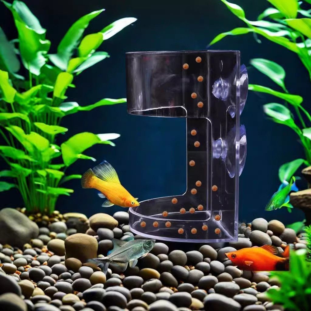 自动鱼食投喂器下沉亚克力食管小型定点喂食鱼缸悬浮飘散喂食器