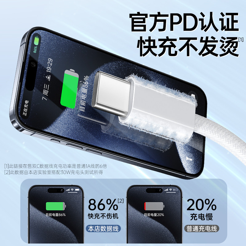 喜美诺快充数据线PD100W适用TypeC苹果15充电线iPhone16苹果13Pro苹果14华为小米PD30W快充