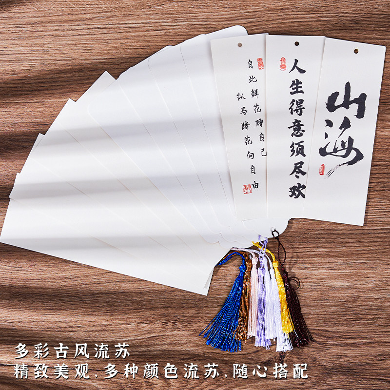 带字漂漆书法空白书签diy异形书签流苏卡纸手写学生用硬笔毛笔古风自制流苏书签纸宣纸定制diy漂漆材料包纸质