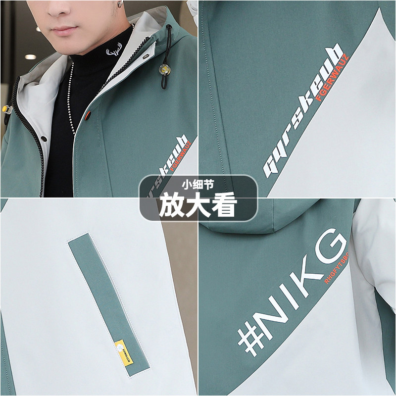 罗蒙爆款春秋季新款风衣休闲男款夹克男士大码冲锋衣休闲连帽外套