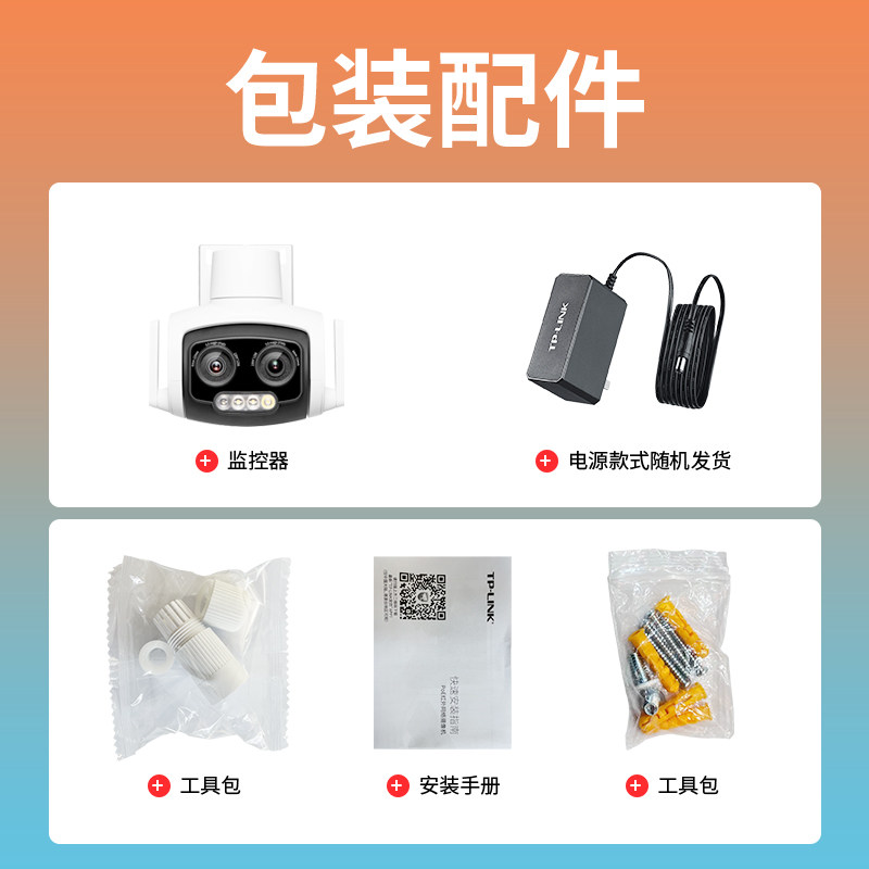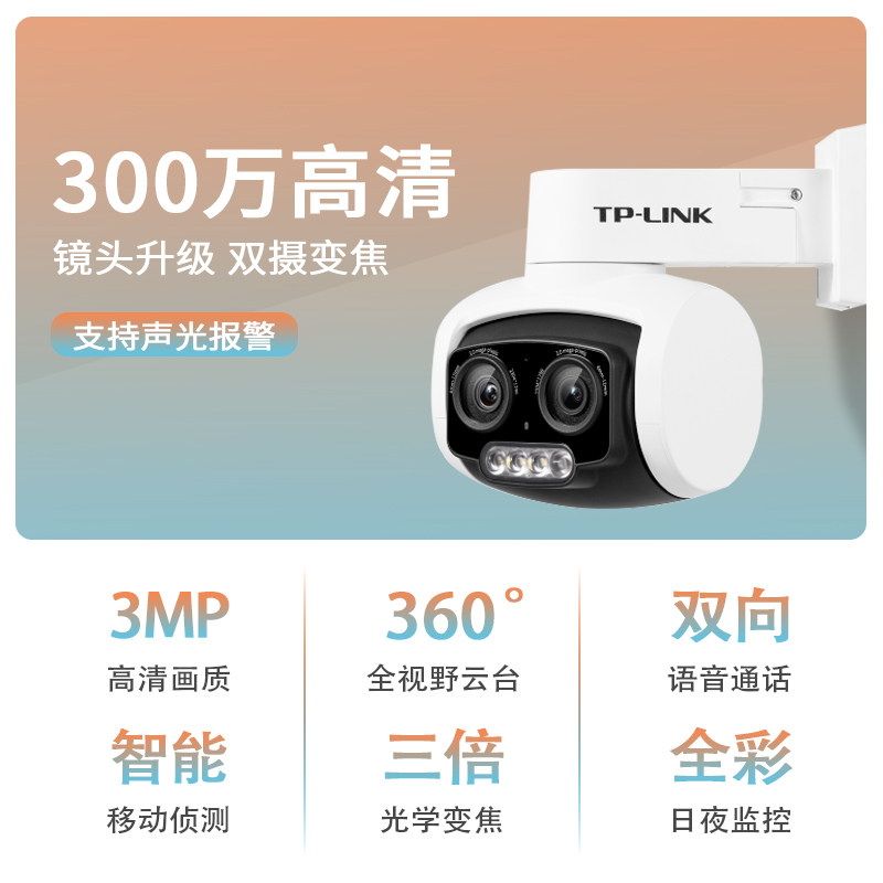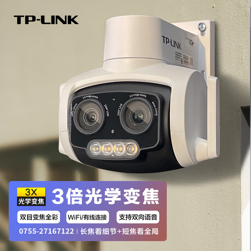 TP-LINK TL-IPC637双目变焦摄像机 80米无线监控器室外防水全彩夜视POE供电家用wifi手机远程360度全景摄影头