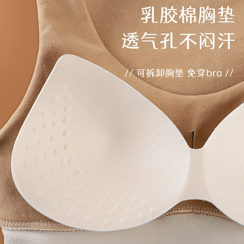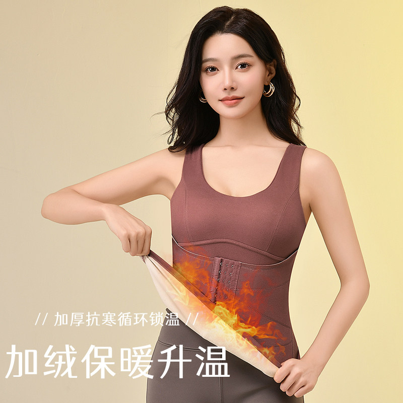 秋冬发热德绒保暖背心女带胸垫修身美体收腹打底加厚内衣文胸双面