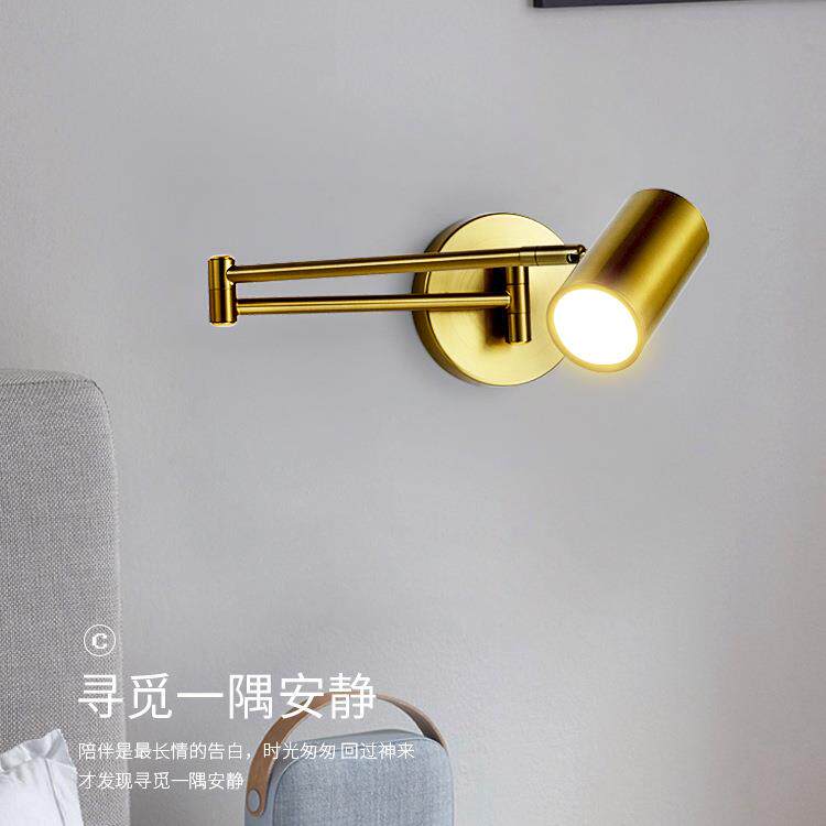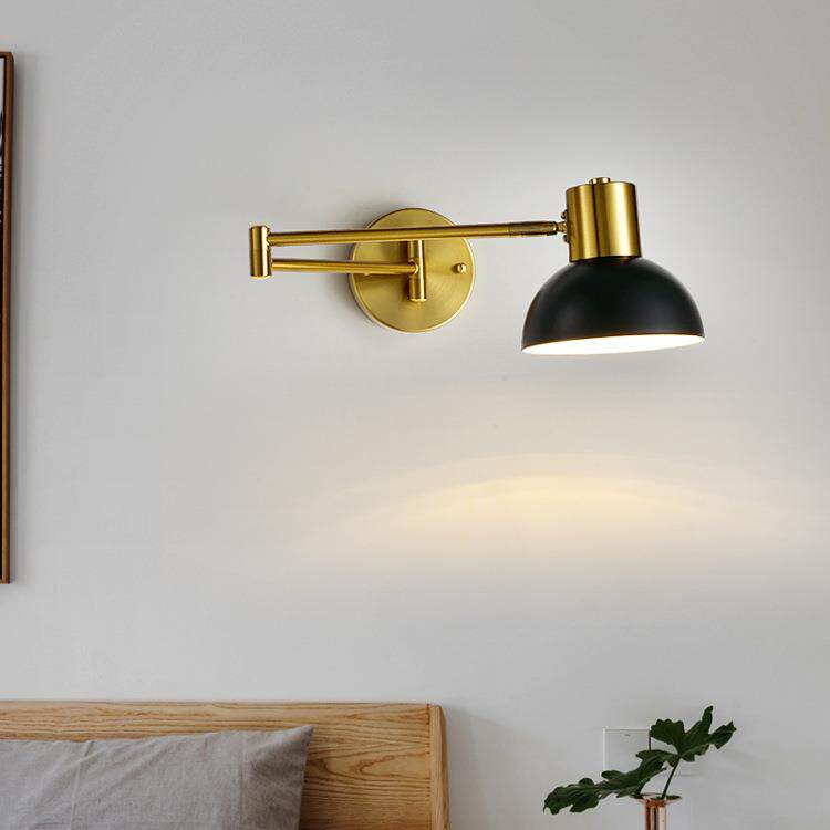 摇臂床头灯折叠伸缩长杆黑色免接线简约轻奢书房卧室旋转阅读壁灯