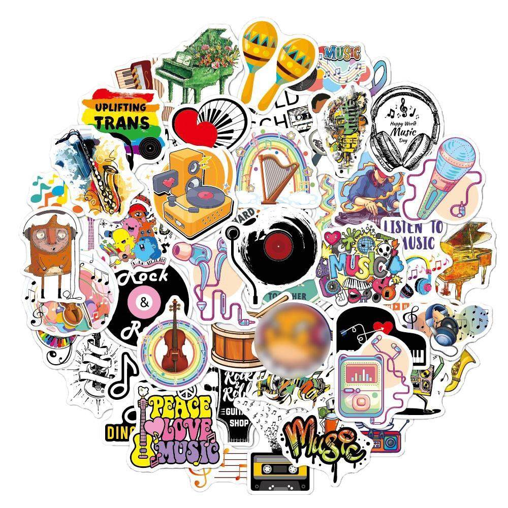 跨境摇滚乐队贴纸50张个性涂鸦乐器装饰电脑行李箱滑板音乐贴纸