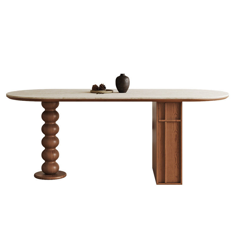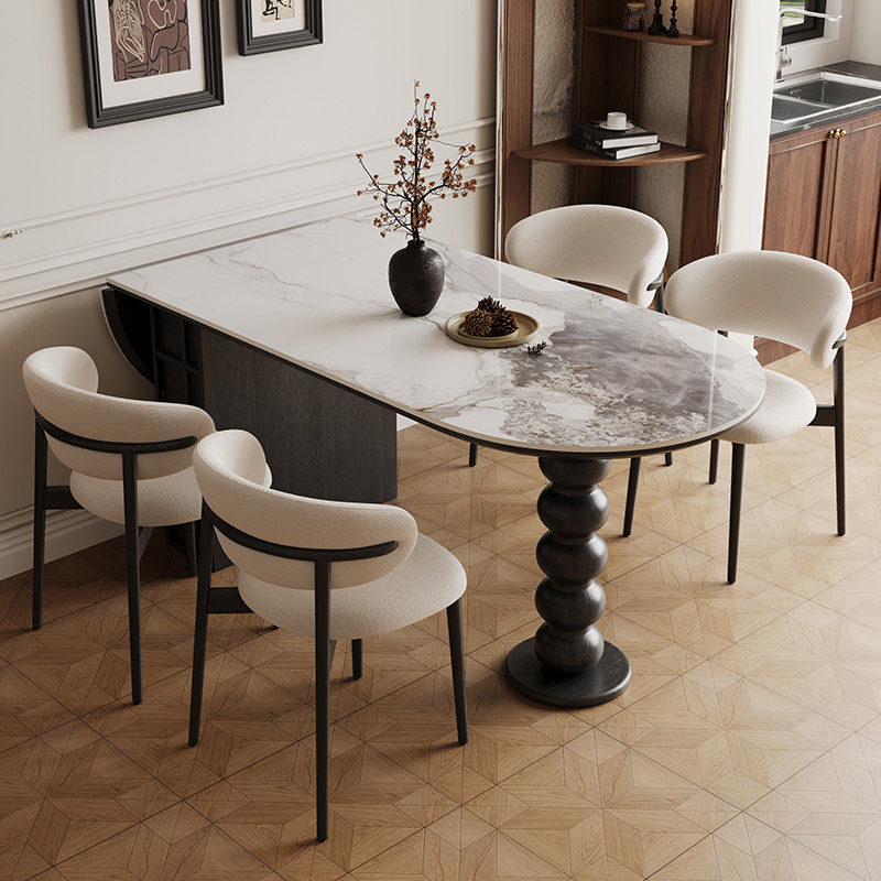宫殿威仪洞石岩板餐桌折叠美式餐桌椅组合家用椭圆形饭桌子中古风