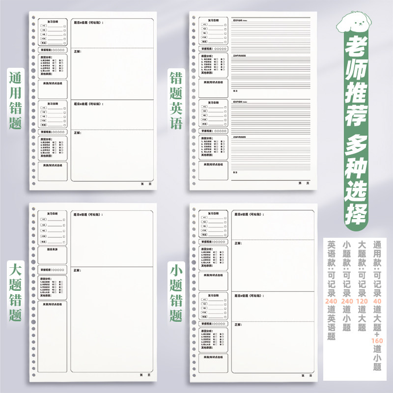 b5卡通小学生错题本数学纠错活页笔记本本子初中生专用考试题纠正活页本小学一二三年级实用型英语错题记录本