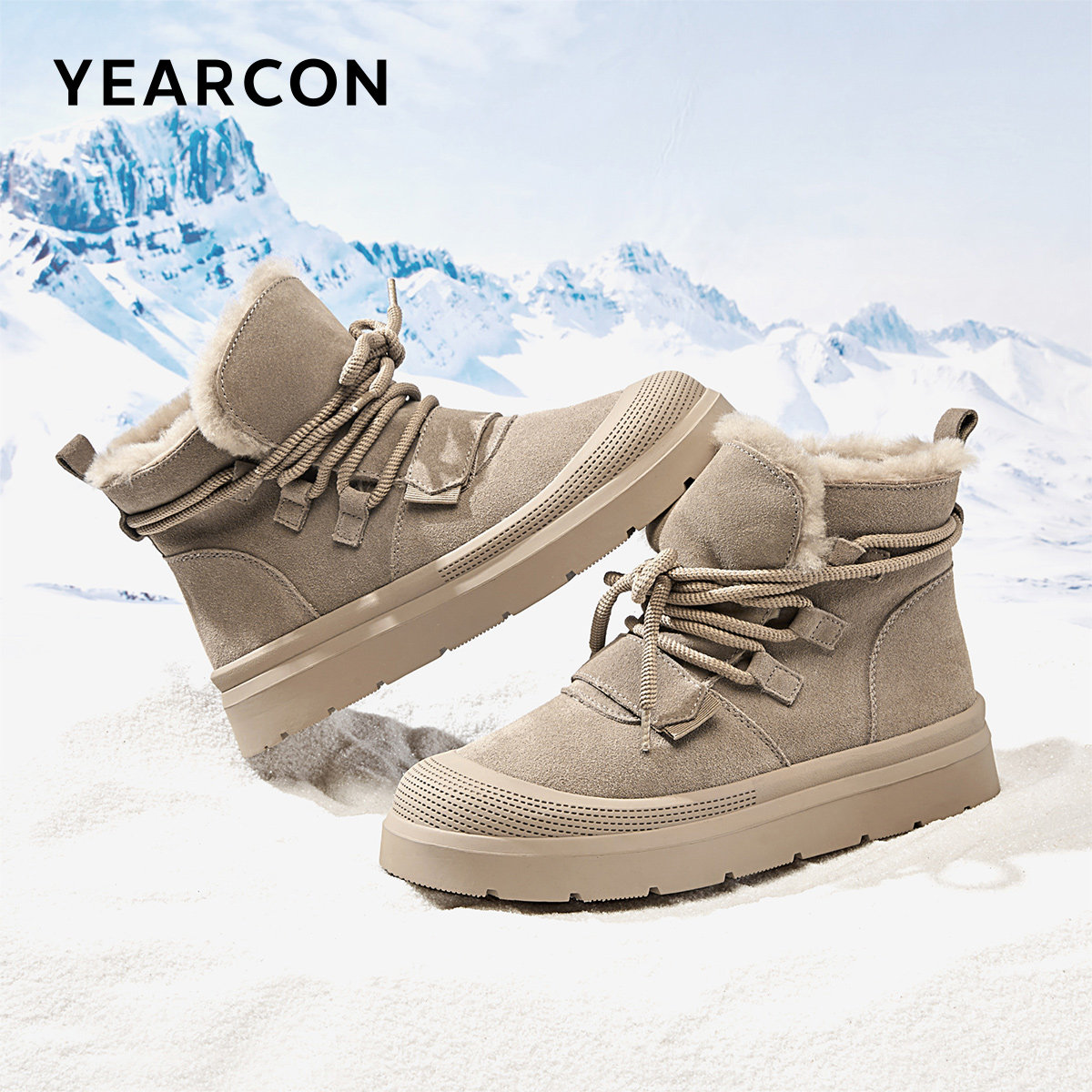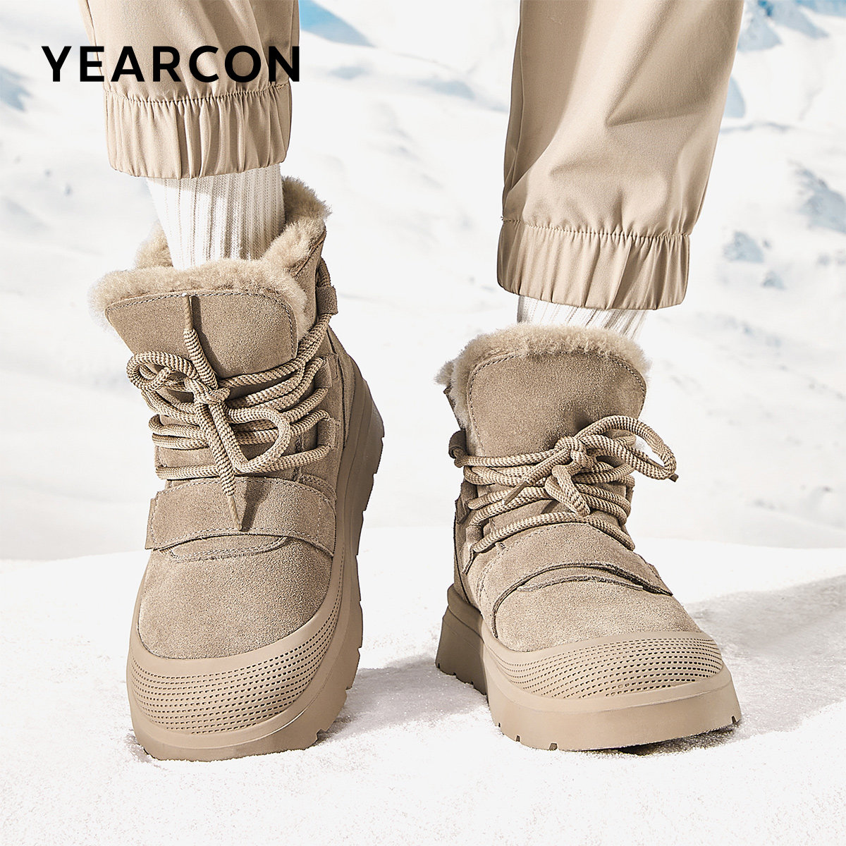 意尔康雪地靴男2025冬款户外套脚棉靴加绒加厚保暖御寒时尚棉鞋男