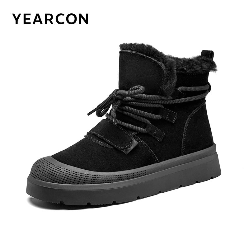 意尔康雪地靴男士2025冬款加绒保暖短靴反绒户外时尚潮流套脚棉靴