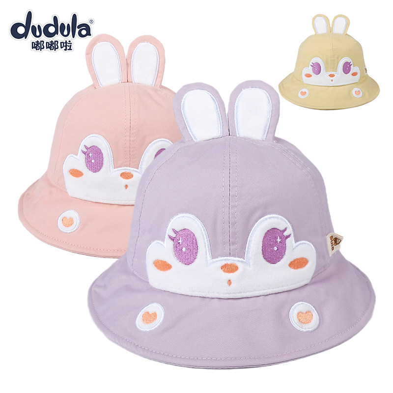 嘟嘟啦女宝宝渔夫帽卡通兔子遮阳盆帽春秋薄可爱公主婴幼儿童帽子