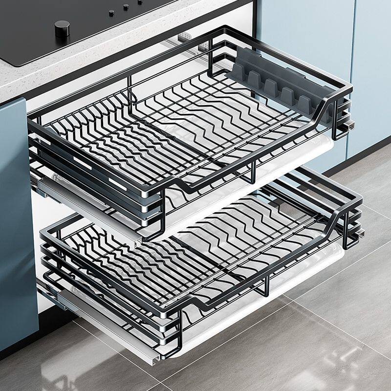 山之鑫拉篮厨房橱柜抽屉式碗篮优质不锈钢方钢双层调料柜厨柜碟碗