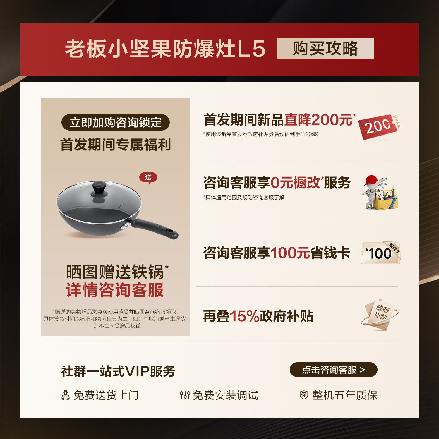 [重磅新品]老板小坚果L5安全防爆猛火燃气灶煤气灶家用双灶台官方