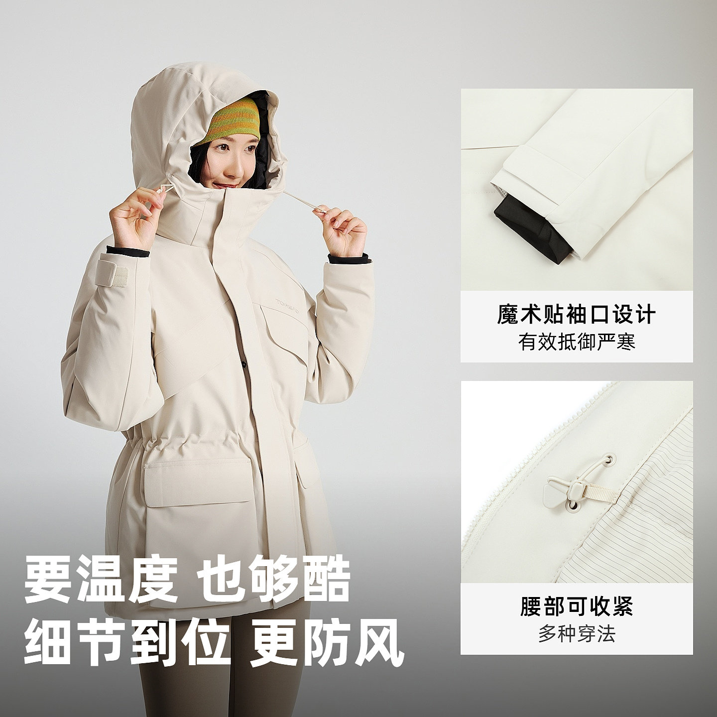 探路者山系羽绒服女冬季新款派克户外徒步极寒登山工装收腰外套