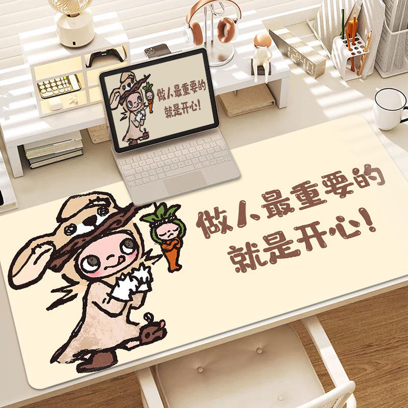 卡通文字鼠标垫子超大女生高颜值办公室键盘垫桌垫电脑垫滑鼠垫