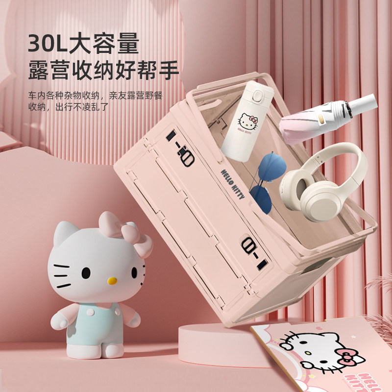 Kitty汽车后备箱收纳箱高级感车载折叠收纳盒卡通露营多功能箱子