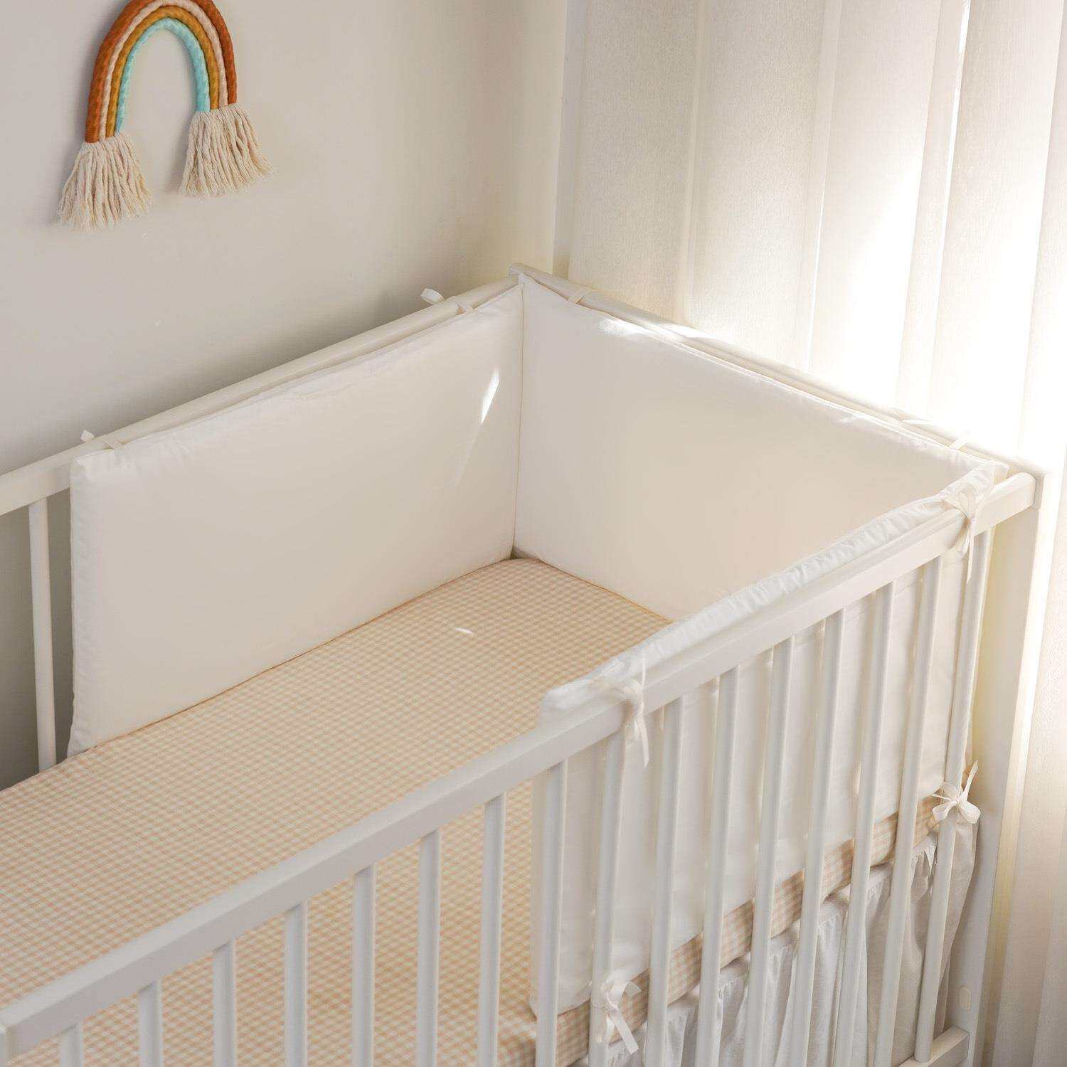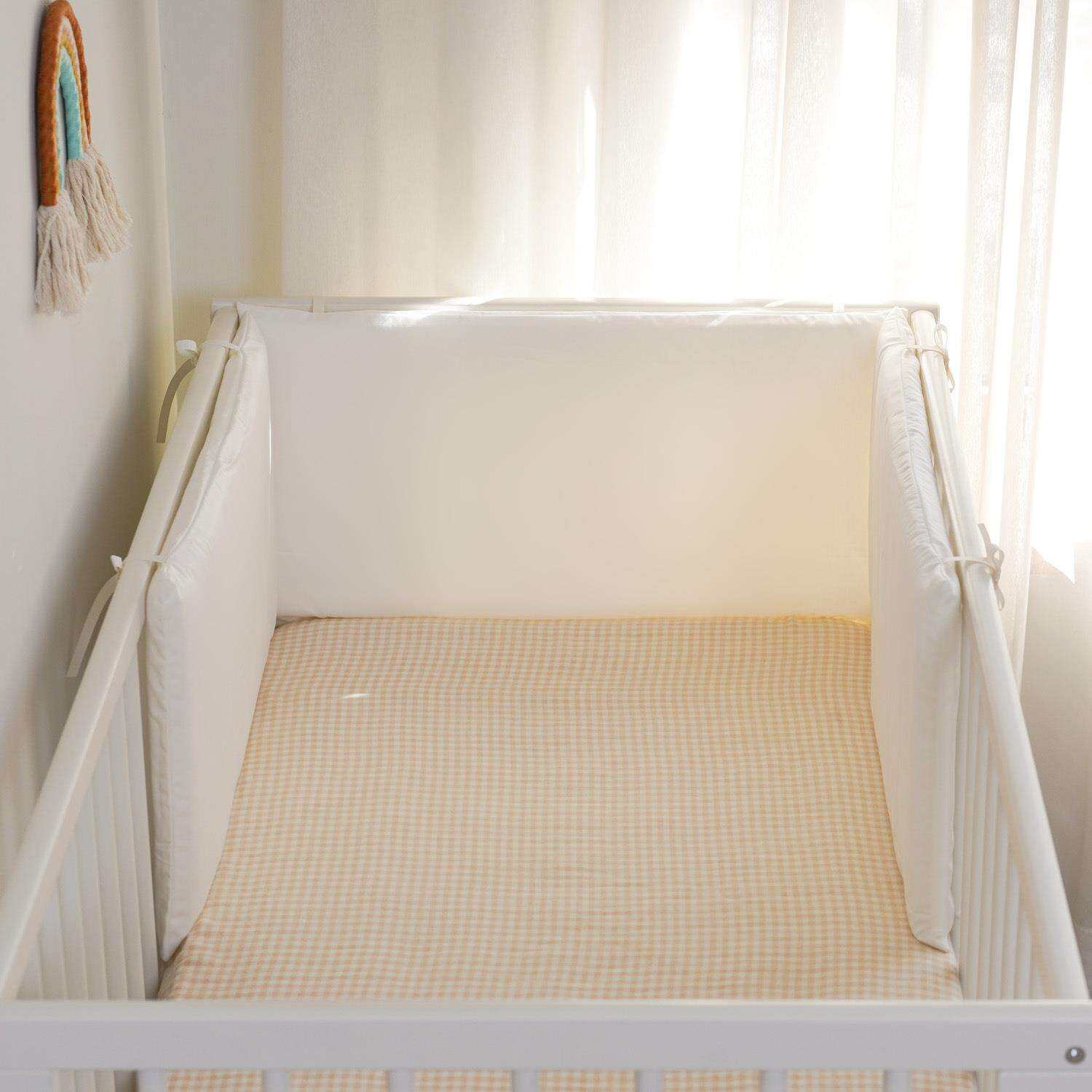婴儿床围纯棉贡缎白色宝宝护栏保护垫贡缎白色60*30*3可拆洗
