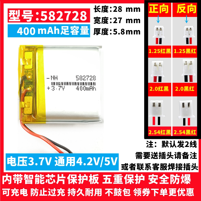 582728电池3.7v聚合物锂电芯663032学生GPS定位智能电话手表通用