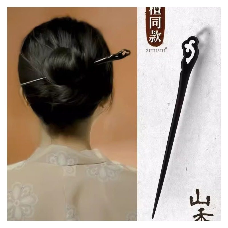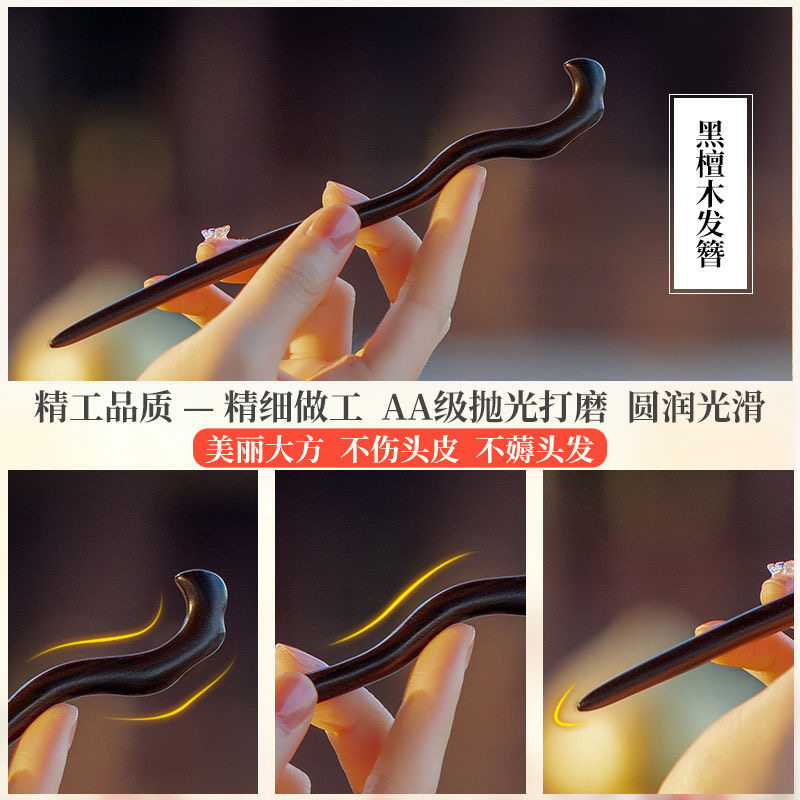 黑檀木灵蛇发簪古风女高级感新中式盘发钗子现代简约手工木钗木簪