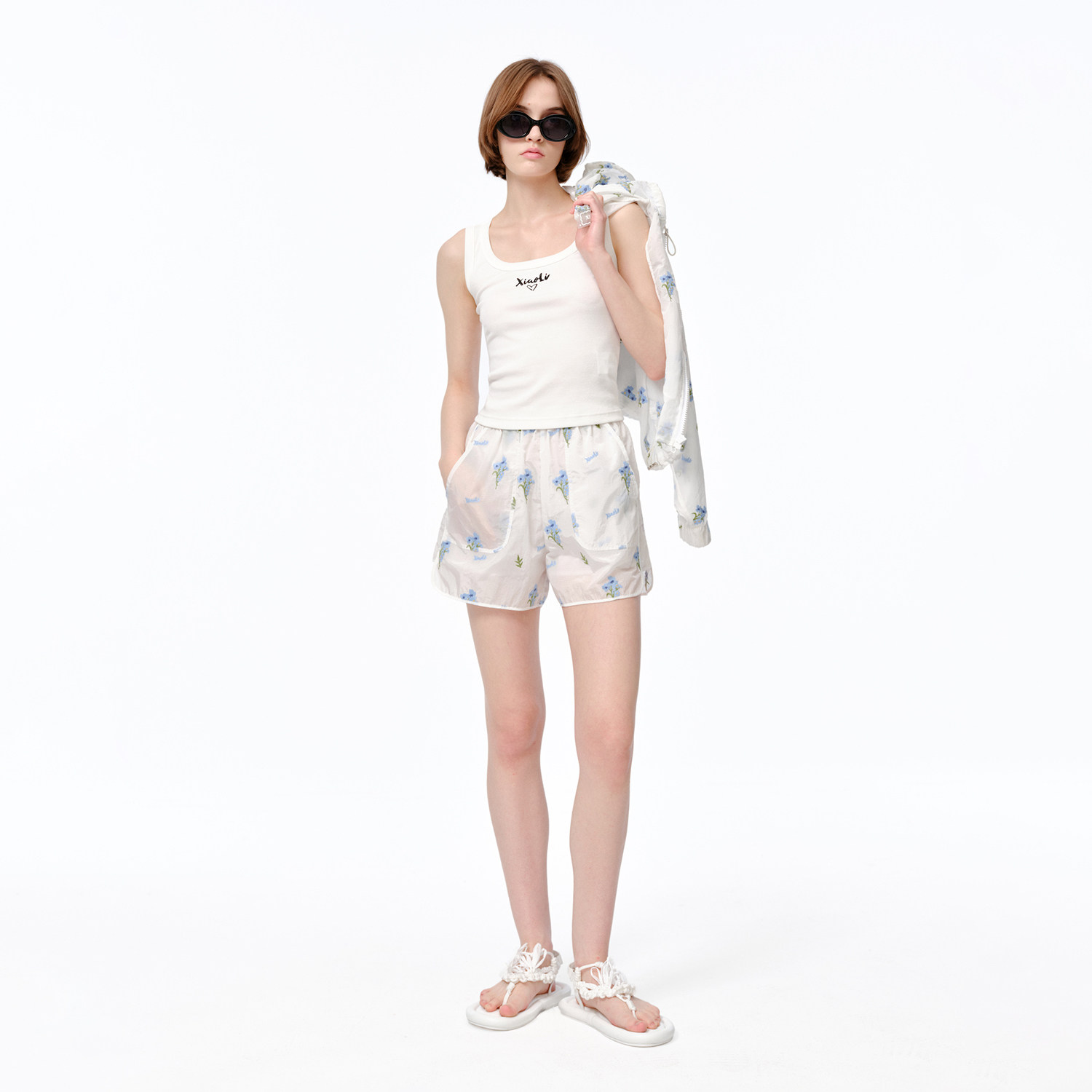 XIAOLI筱李 25春夏新品小苍兰刺绣运动风短裤户外穿搭