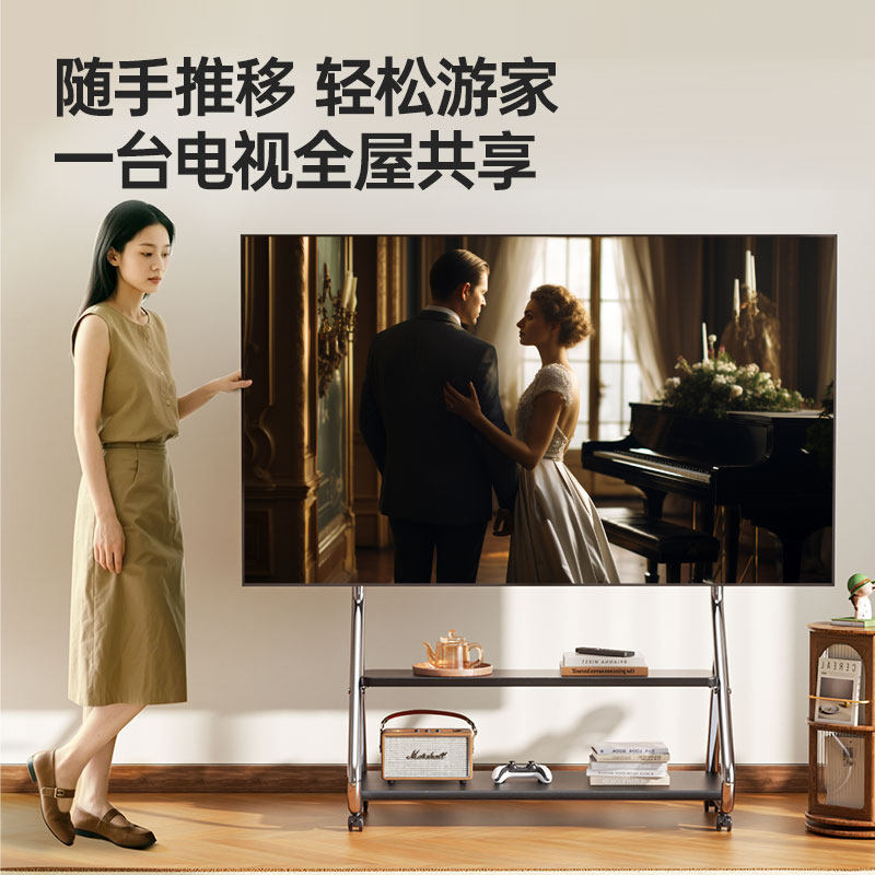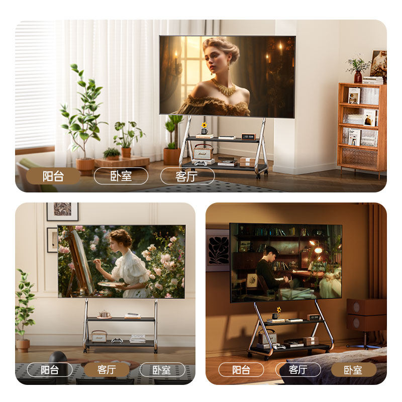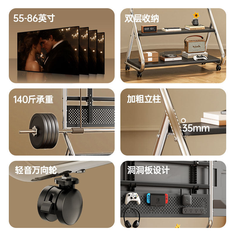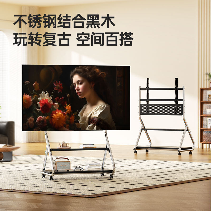 恩利普不锈钢电视机可移动支架落地式通用立式带轮推车艺术挂架