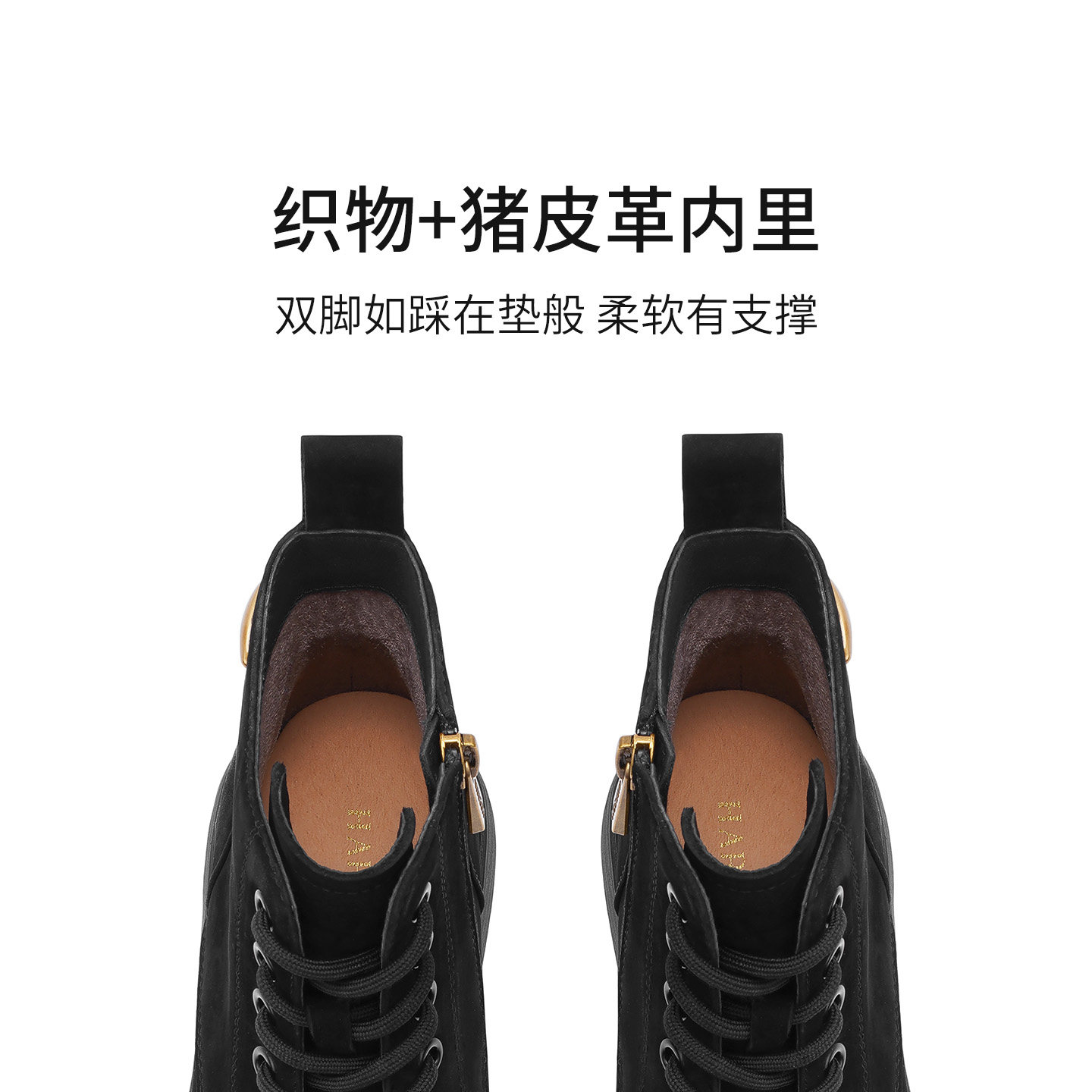 天美意粗跟厚底增高加绒英伦马丁靴女鞋子休闲短靴皮靴2025冬新款