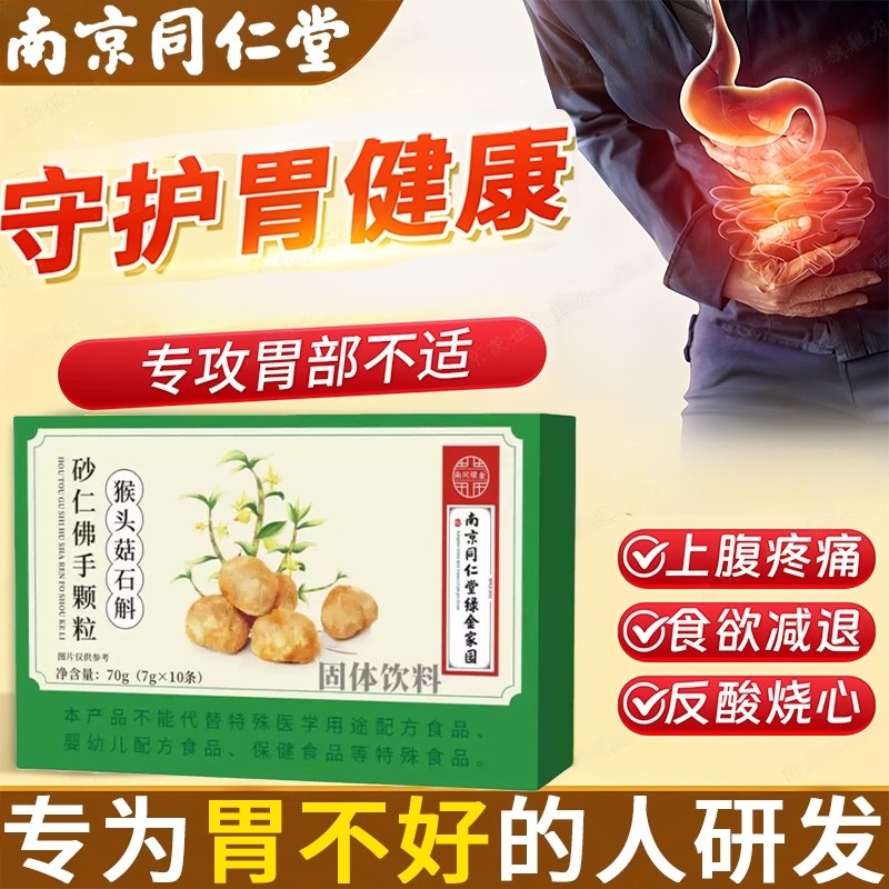南京同仁堂猴头菇石斛砂仁佛手颗粒胃痛胀反胃酸保护粘膜调理冲饮