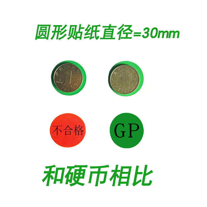 30mm圆形合格证不干胶贴纸不合格NG尾数GP特采PASS待检验标签贴纸