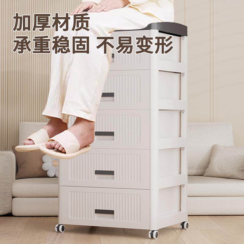 抽屉式收纳柜家用置物柜多层客厅墙边加厚五斗柜床头可移动储物柜