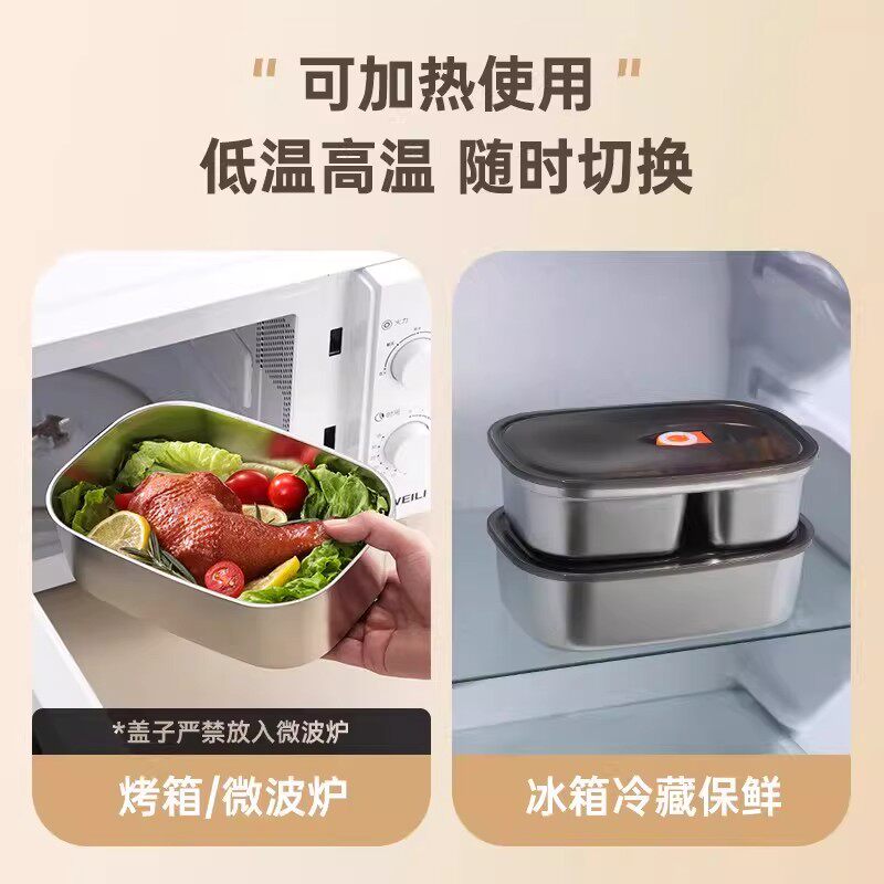 食品级密封保鲜盒304不锈钢饭盒午餐盒大容量可微波炉加热便当盒