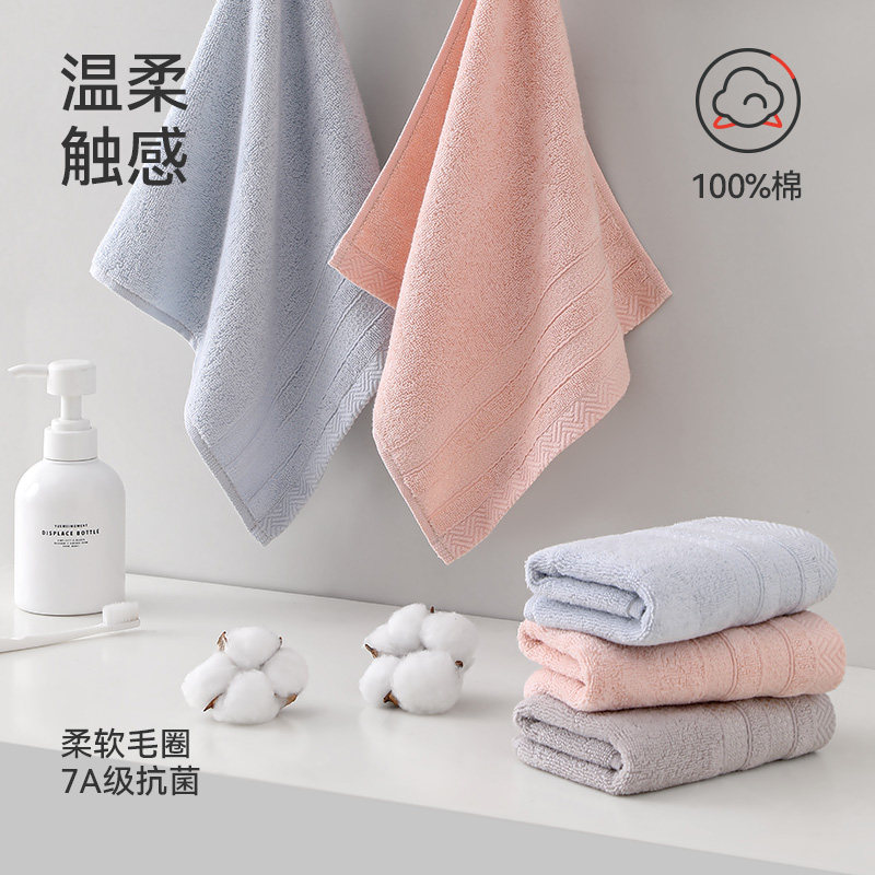 三利7A抗菌纯棉毛巾防螨吸水透气亲肤可挂小方巾家用洗脸擦手巾