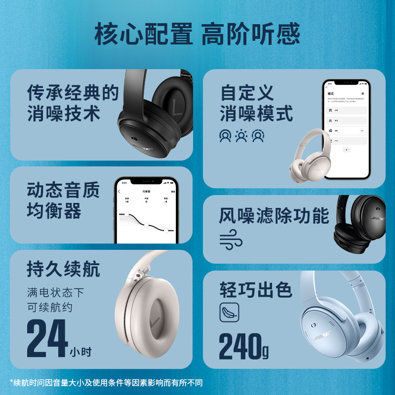 【全球购严选】Bose QC消噪耳机无线蓝牙头戴式降噪耳机QC45二代