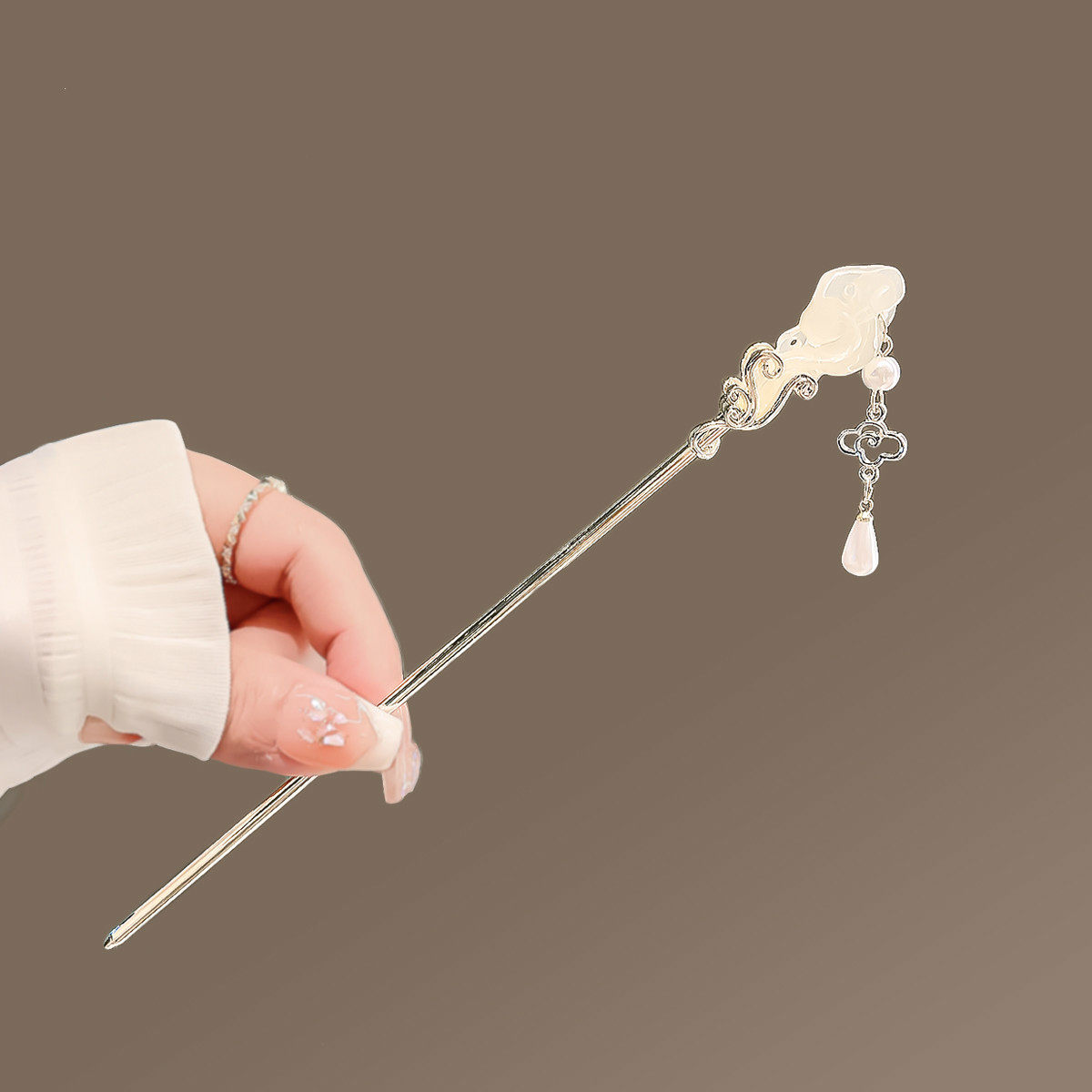 中式玉如意古风流苏发簪女步摇高级感后脑勺盘发簪子祥云发钗配饰