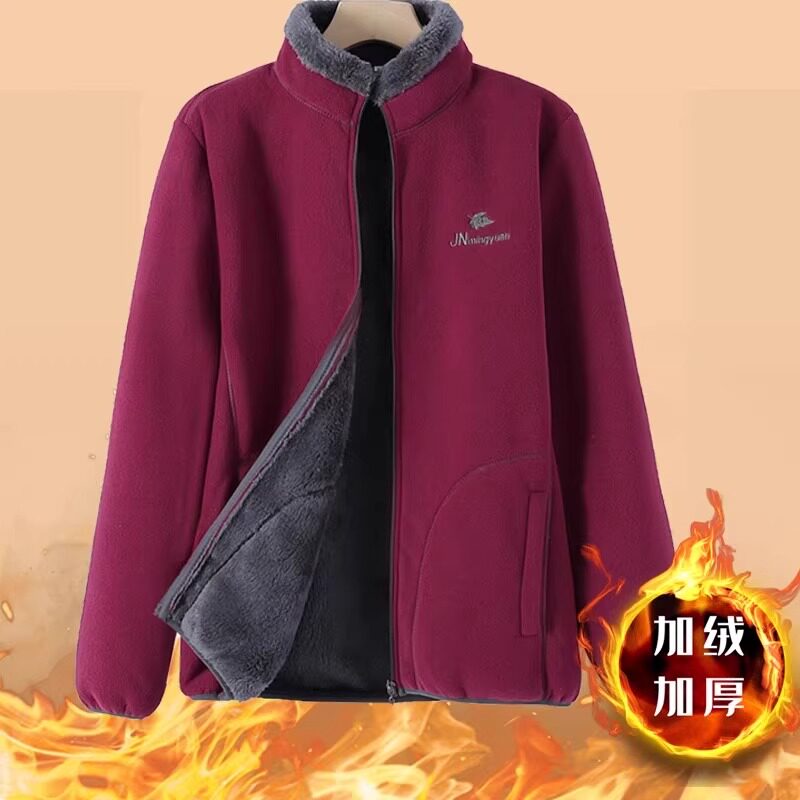 妈妈摇粒绒加绒加厚外套冬装中老年人女装奶奶抓绒保暖上衣秋冬棉