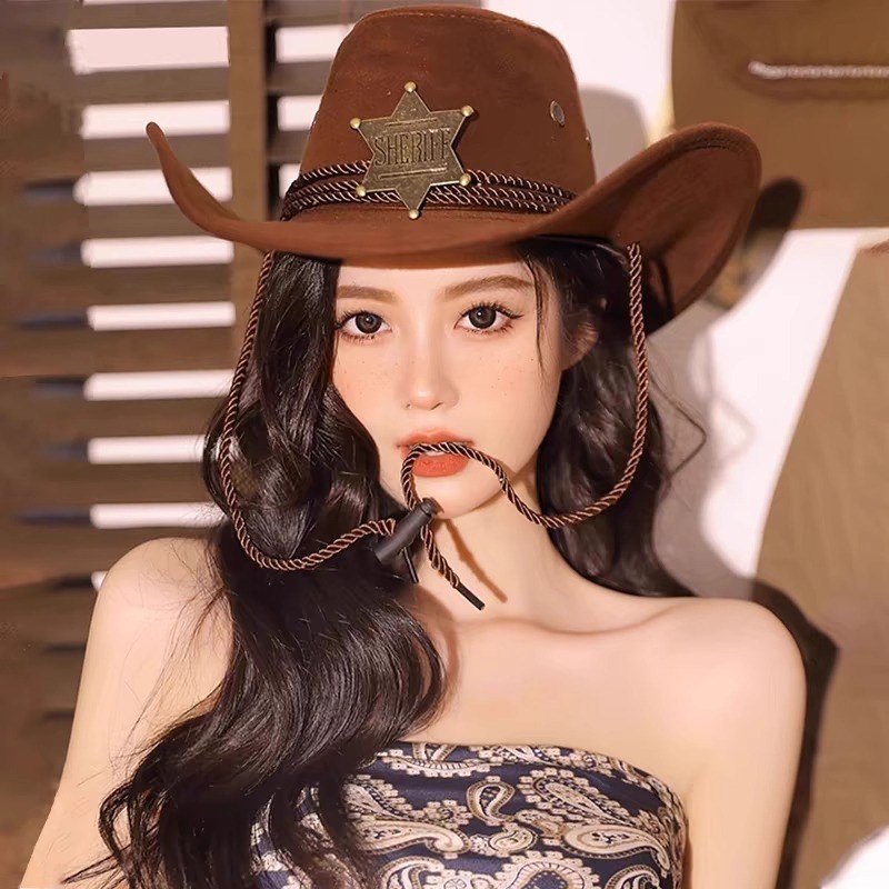 大檐宽檐西部牛仔遮阳帽女复古防晒沙漠辣妹爵士帽骑士礼帽男白色