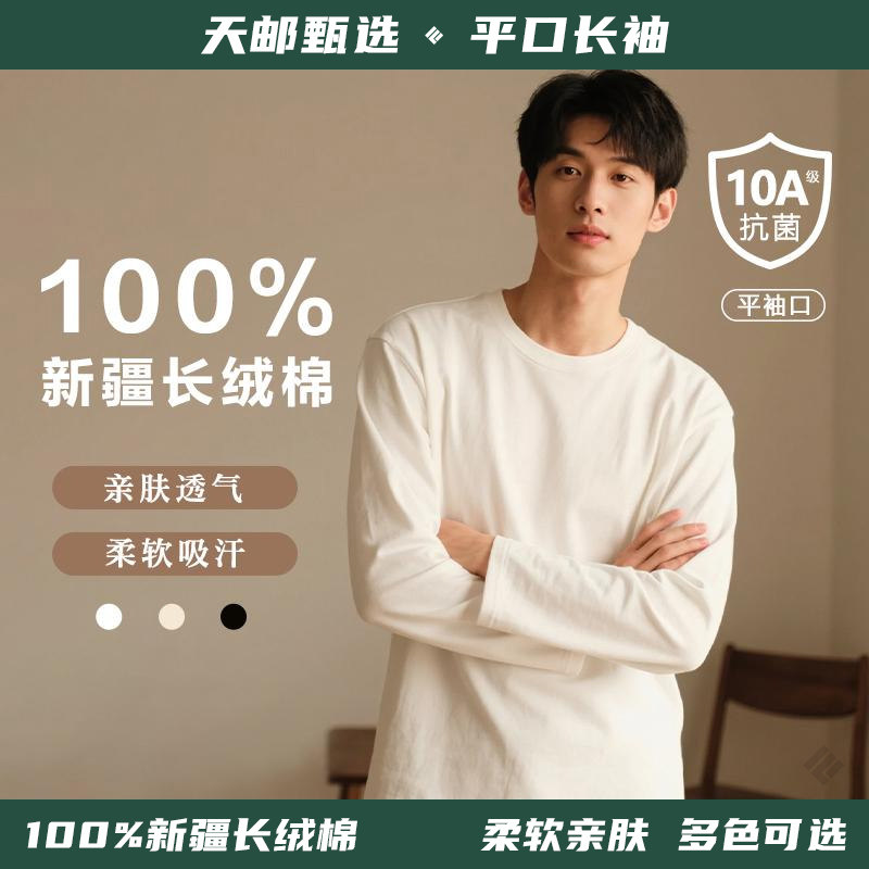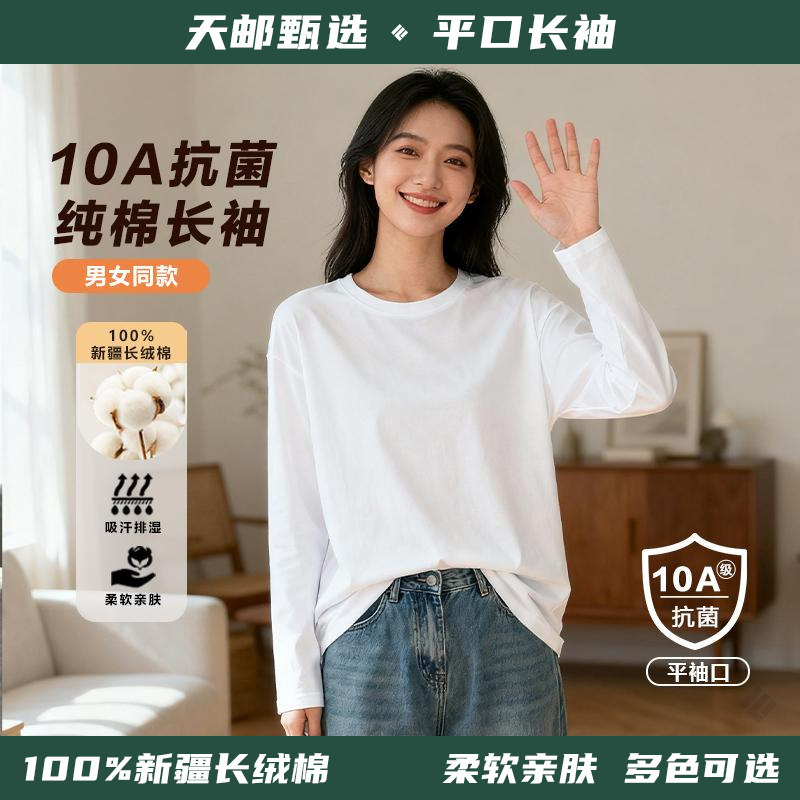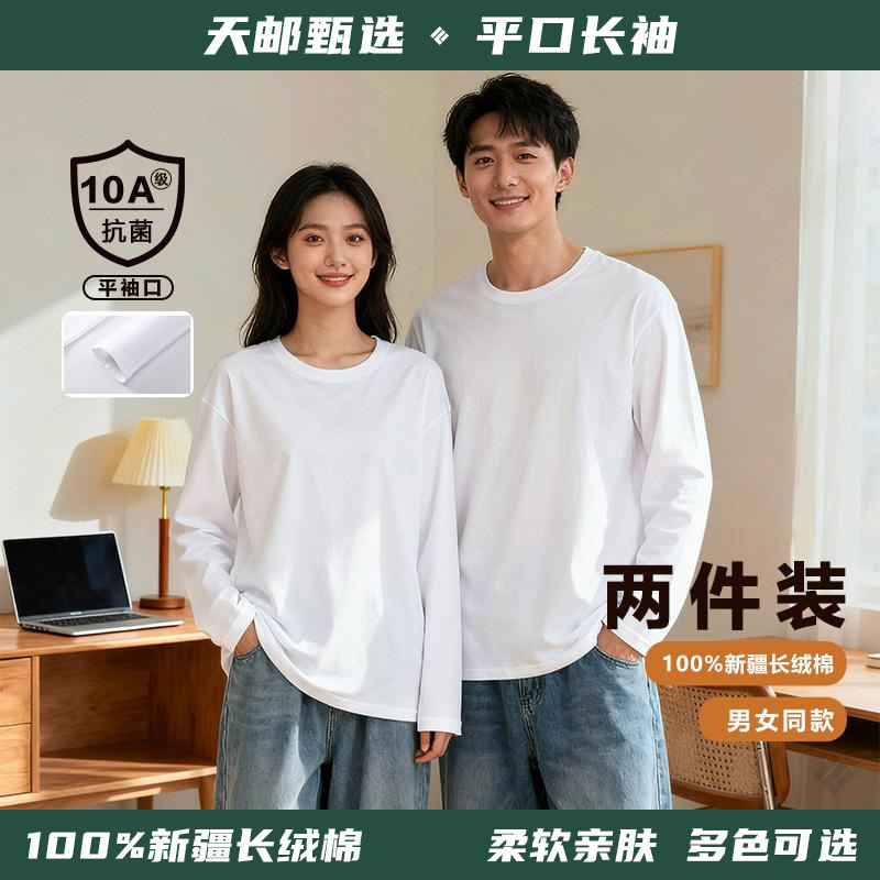 【天邮甄选】100%纯棉长袖T恤两件装纯色百搭圆领宽松舒适平袖口