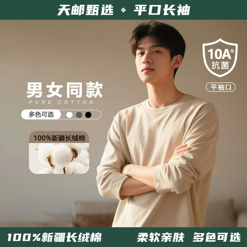 拇指白小T二代纯棉长袖t恤男女款2025秋季舒适纯色百搭打底衫
