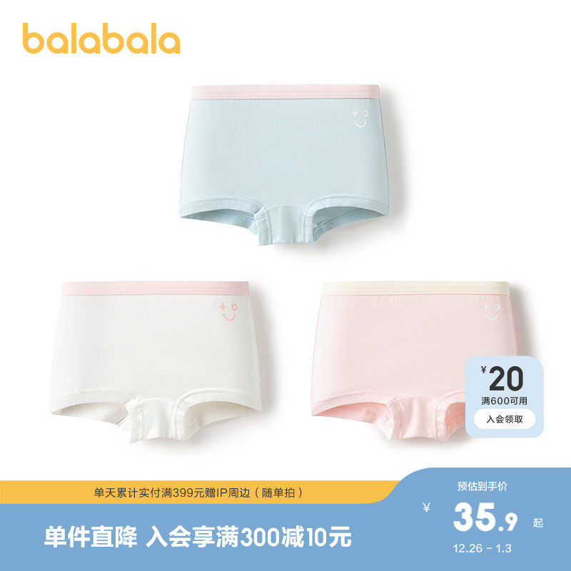 巴拉巴拉儿童内裤棉a类女童平角短裤小童大童四角裤不夹pp三条装