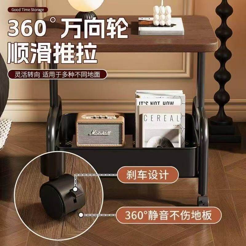 可移动沙发边几现代简约小推车茶几轻奢高级感中古床头边柜置物架