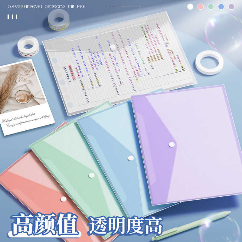 A4文件袋透明塑料加厚大容量按扣试卷袋莫兰迪收纳袋学生考试用防水文件夹包文具小学生办公用品档案资料袋